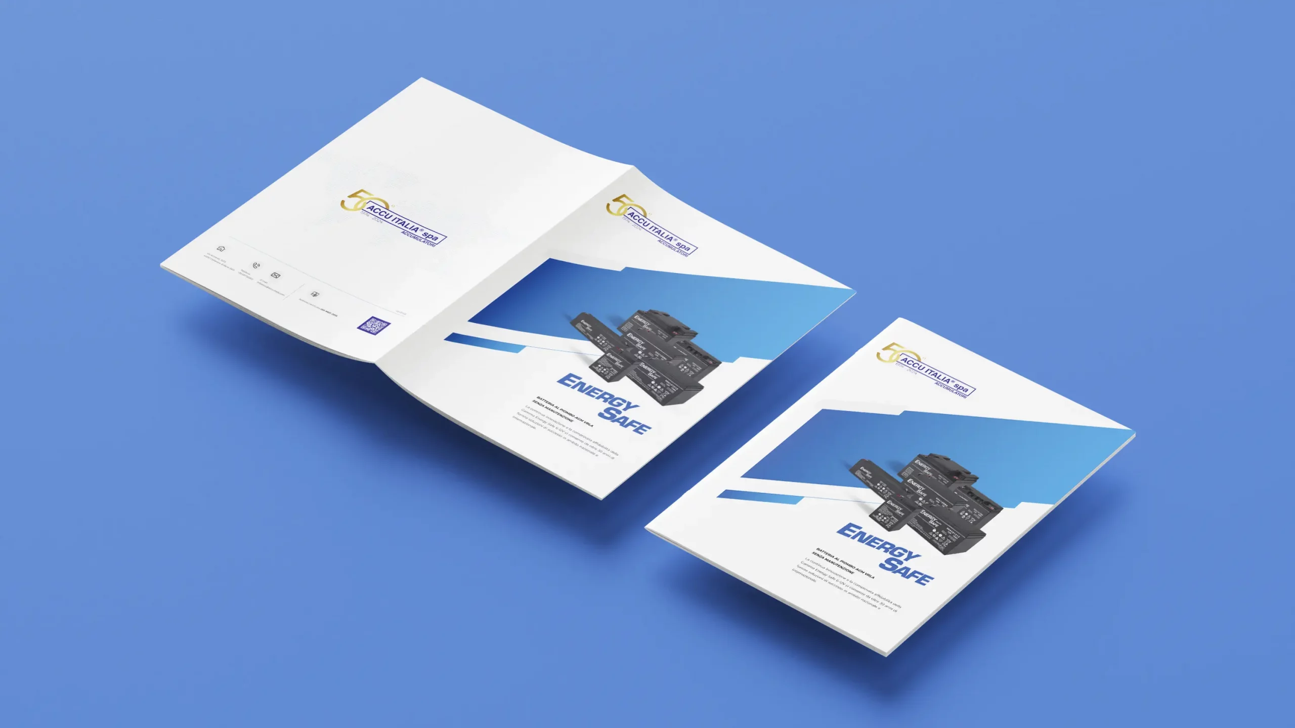 Progettazione del catalogo tecnico per la linea "Energy Safe" (batterie AGM VRLA) in occasione del 50° anniversario di Accu Italia.