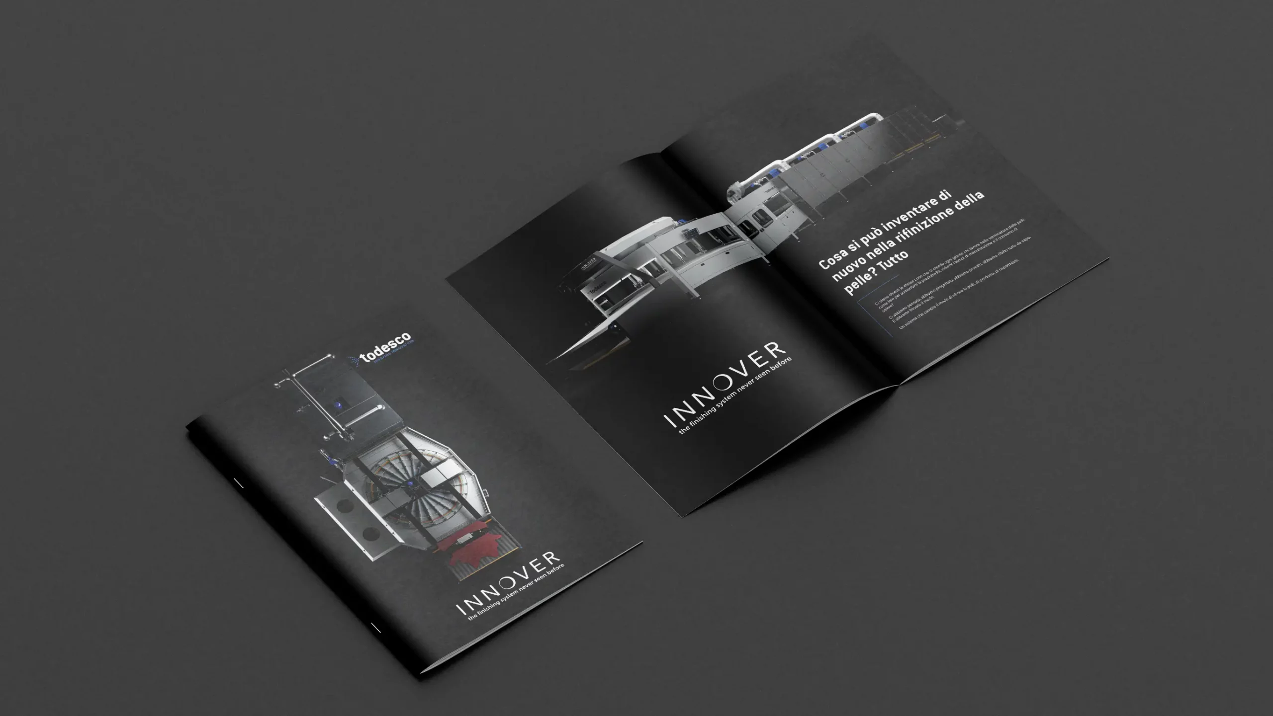 Progettazione della brochure di lancio per Innover, il sistema di rifinizione a spruzzo rotativo più evoluto sul mercato.