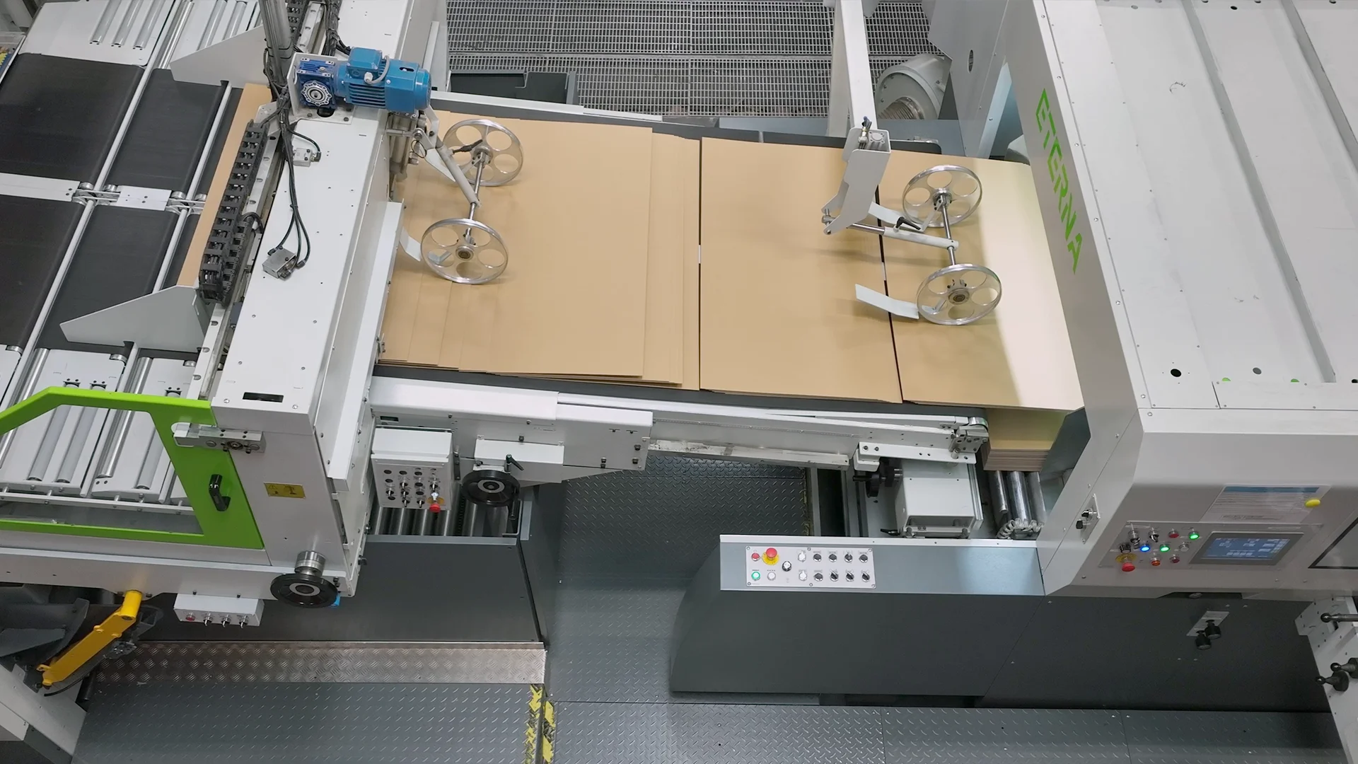 Abbiamo unito due linguaggi visivi: da un lato, inquadrature dal taglio documentaristico e relazionale che mostrano le figure chiave muoversi e confrontarsi all'interno dello stabilimento; dall'altro, riprese tecniche e dall'alto che evidenziano la fluidità e la precisione dei macchinari Eterna durante la lavorazione del cartone. Questo contrasto crea un racconto che trasmette al contempo efficienza tecnologica e fiducia umana.