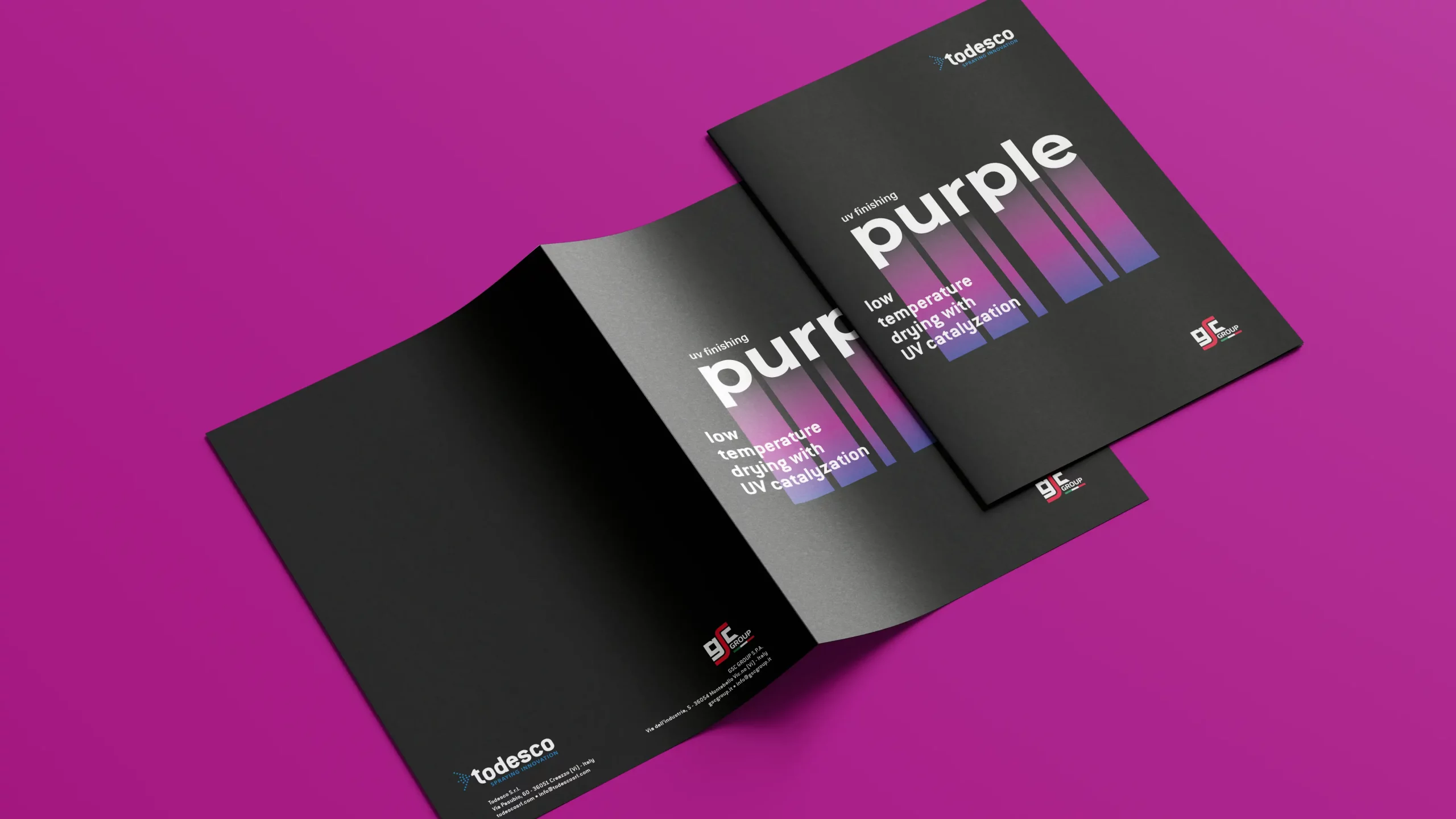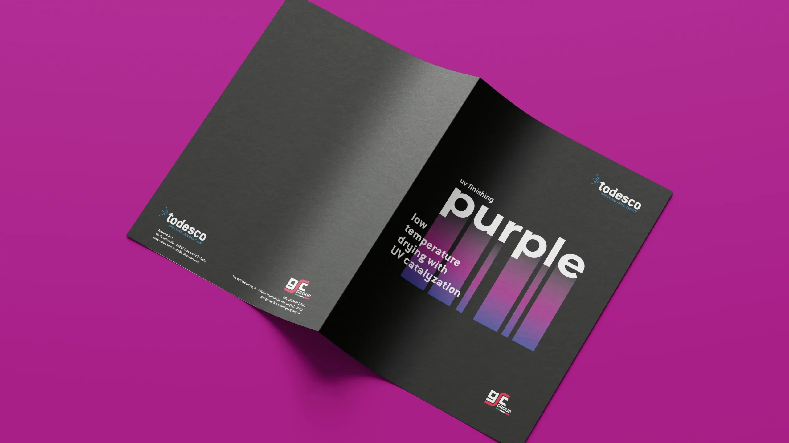 Il progetto nasceva da una partnership strategica tra Todesco (macchinari) e GSC Group (chimica). La sfida era comunicare una "rivoluzione copernicana" nel settore: abbandonare i forni ad alta temperatura per un processo freddo e sostenibile. Il visual doveva distaccarsi completamente dall'estetica industriale tradizionale per evocare un futuro pulito e tecnologico.